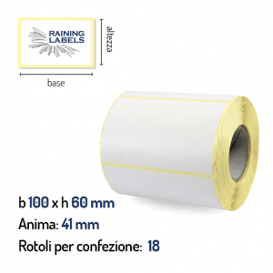 Confezione da 18 rotoli di etichette a trasferimento termico 100×60 mm Ø 41