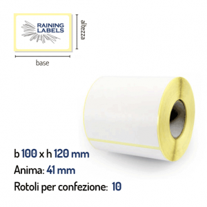 Confezione da 10 rotoli di etichette a trasferimento termico 100×120 mm Ø41