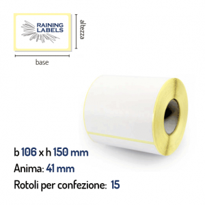 Confezione da 15 rotoli di etichette a trasferimento termico 106×150 mm Ø41
