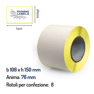 Confezione da 8 rotoli di etichette a trasferimento termico 106×150 mm Ø 76